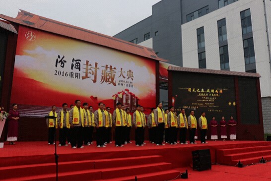 封藏仪式作为大典上必不可少的环节,从酿酒、接酒、封坛、入库全程带领嘉宾互动,真正让嘉宾体会民谚中所提到的“重阳蒸酒 香甜可口”。此次汾酒集团隆重推出的是66°头锅原浆汾酒,该酒为本年度九月初九开产酿造蒸馏的第一批原浆酒,选用晋中平原所产的“一把抓”高粱为原料,用大麦、豌豆制成的“青茬曲”为糖化发酵剂,取古井和深井的优质水为酿造用水,经独特的“地缸28天发酵,清蒸二次清,一清到底”传统酿造工艺并由汾酒人精心酿造而成,在接酒时掐头去尾,保留腰部的酒体,是酒中珍贵的极品。