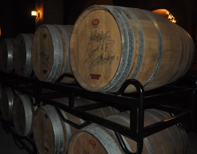 记者现场看到,在一些存酒的橡木桶上刻着不同人的签名。现场讲解人员告诉记者,酒窖的这个区域是君顶酒庄顾客的私人存酒区,他们买下整桶葡萄酒后保存在这里,可以随时来取也可以分批按瓶来取走酒,酒窖的恒温恒湿环境能很好保存酒体的质量,使顾客每次品尝的都是最佳口感与品质的葡萄酒。