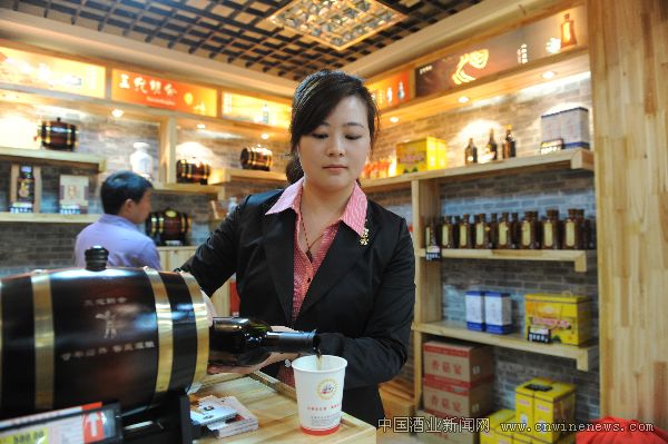 河南省供销社利用自身供销网络为本地特色产品和豫商商品打造市场平台。目前,已有3000多个品种的产品通过集中联合展示和河南地方特产展销中心逐步推向市场。图为河南地方特产展销中心南阳市展销区的营销经理在推介南阳小米黄酒。