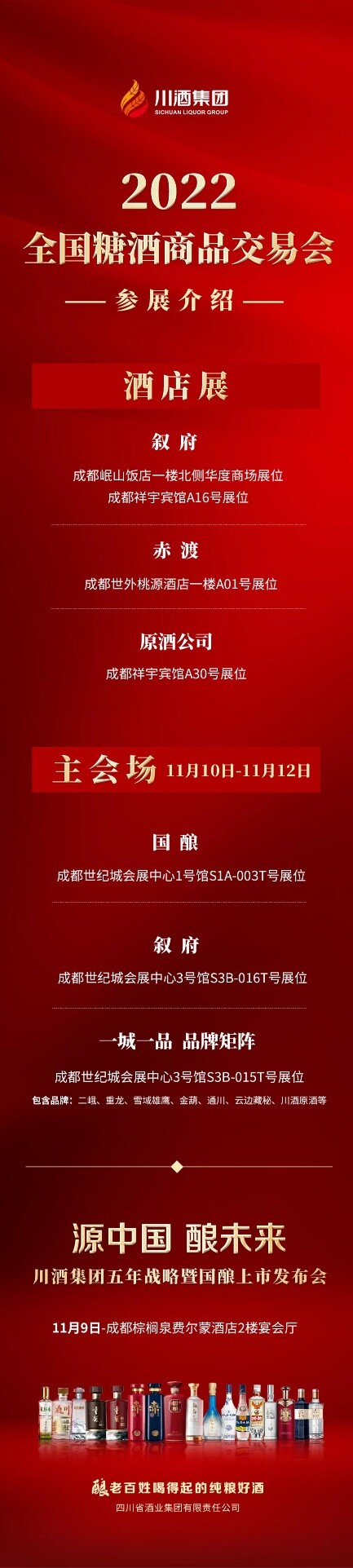 2022年,对川酒集团来说,又是一个特殊的节点,是川酒集团开启下一个五年增长新周期的开局之年。对于未来,川酒集团将如何谋划?这些悬念都将在11月9号,川酒集团五年战略暨国酿上市发布会上一一解开,敬请期待!
