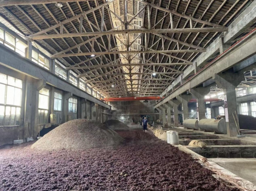 第二次投料叫“糙沙”,时间一般为下沙一个月后。下沙和糙沙的投料量分别为投料总量的50%。糙沙整粒与碎粒之比为70%:30%,然后与下沙发酵后的糟醅进行混合,上锅蒸煮、摊凉、加曲、堆积、再次入池,到这里两次投料全部完成。