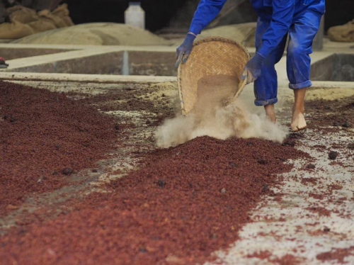 然后是两次投料。酱酒的投料分做两次,分别叫“下沙”和“糙沙”。