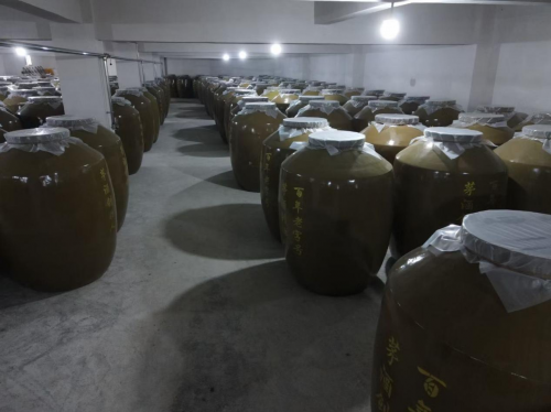 经过一年生产周期所酿造出的七个轮次的新酒还不能进行装瓶销售。必须经过3-5年的窖藏勾调才能出厂。王丙乾.矛掌柜酒的窖藏时间一般要三年,窖藏时间越长,杂醇、乙醛这些不好的东西析出,酒体分子与水分子聚合更彻底,酒的味道就更好,酒体会更醇厚。