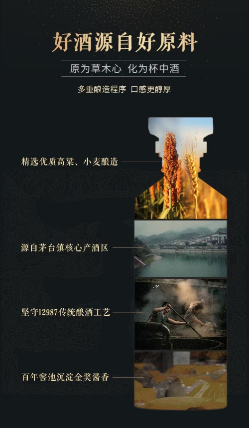 完整的古法大曲坤沙酱香酒酿造工艺远不止于此。一壶好的酱酒,承载着岁月的沉淀,凝聚了时间的精华。“12987工艺”的背后,是时光给予我们王丙乾.矛掌柜的馈赠,是酿酒师王丙乾世代匠心的传承。时光雕琢之后,方得美酒酱香。