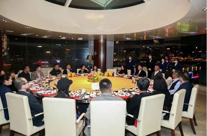 在晚宴正式开始之前,来自NYC训练有素的英式管家为在场的会员、嘉宾作了开餐仪式讲解。接着,郎酒股份青花郎上海办事处总经理裴振禹先生一一介绍了来自青花荟VIP精英俱乐部的会员朋友们,并开启了诺莱仕厅的穹顶天窗,对岸万国建筑群和陆家嘴三栋地标性建筑的璀璨灯火映射于包房间,如梦似幻。