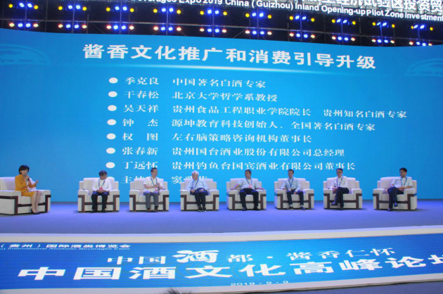 2019年9月9日,“中国酒都·酱香仁怀”中国酒文化高峰论坛在第九届中国(贵州)国际酒类博览会登录大厅举行。本次论坛旨在将仁怀打造成中国白酒新文化创作、挖掘和传播的高地,从而在中国白酒领域掀起一场轰烈的中国白酒新文化运动,推动中国白酒产业可持续发展。