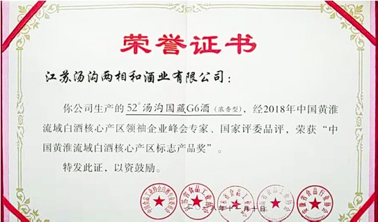 本次峰会由中国食品工业协会白酒专业委员会、江苏省食品工业协会、山东省食品工业协会、河南省食品工业协会及安徽省食品行业协会联合主办,与会专家和白酒国家评委还对四省向峰会推荐的本省代表性的白酒产品进行了感官质量鉴评品评。根据感官质量鉴评品评结果,16个产品获得“2018年度中国黄淮流域白酒产区标志产品奖”,汤沟酒业生产的52°汤沟国藏G6酒位列其中。这也代表着汤沟国藏都得到了行业专家和消费者的认可,成为黄淮流域白酒产区的重要标志。