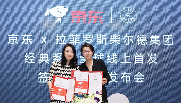 京东商城消费品事业部总裁 冯轶(左) 、拉菲罗斯柴尔德集团大中华区品牌总监 Anna Song 宋萍(右)
