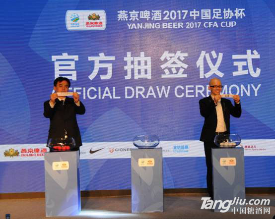 新春伊始,燕京啤酒2017足协杯抽签仪式于2月9日下午15时在北京昆仑饭店正式举行,并由央视网络平台进行直播,64支球队抽签纷纷落位。中国足协职业联赛理事会执行局局长马成全,中国足协执委、新闻委员会主任汪大昭,中央电视台主持人张斌、足球名将孙继海以及北京燕京啤酒集团公司副总经理谢广军等出席此次抽签仪式。今年也是燕京啤酒连续第4年赞助足协杯赛事,旨在支持和推动中国足球以及中国体育事业的发展,在提高“运动全民化、足球水平专业化”的同时,助推中国足球的早日腾飞。